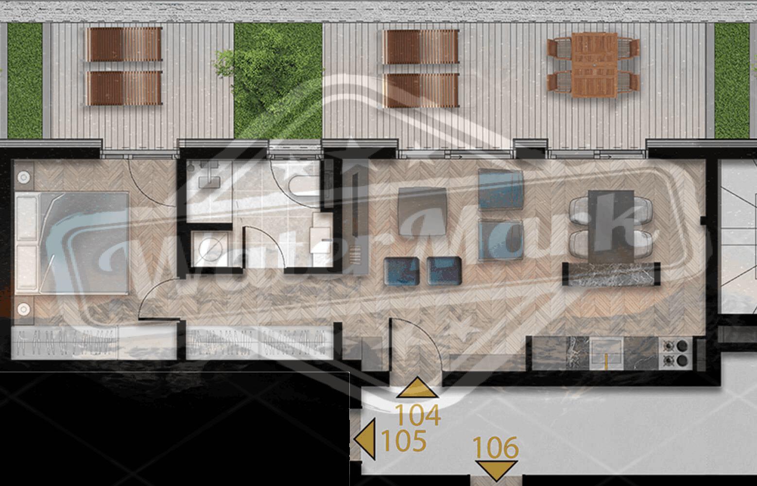 The area is 69.64 square meters and the interior is designed in an elegant Italian style that adds sophistication to every corner of the home.