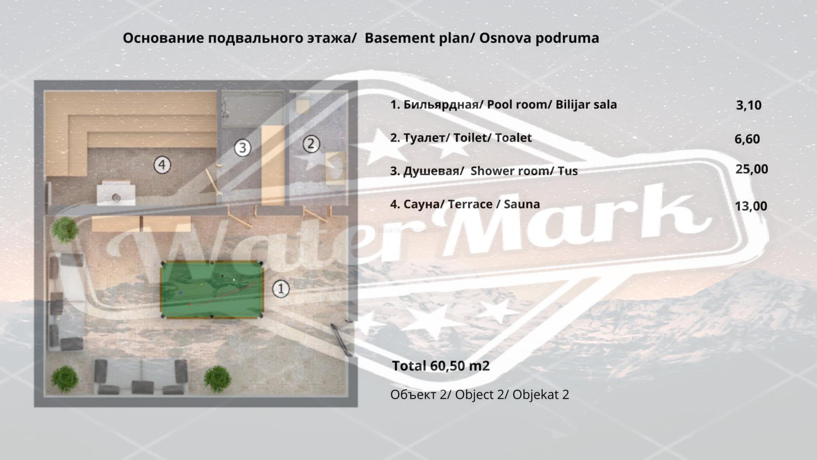 - Basement: relaxation room, sauna, shower, toilet