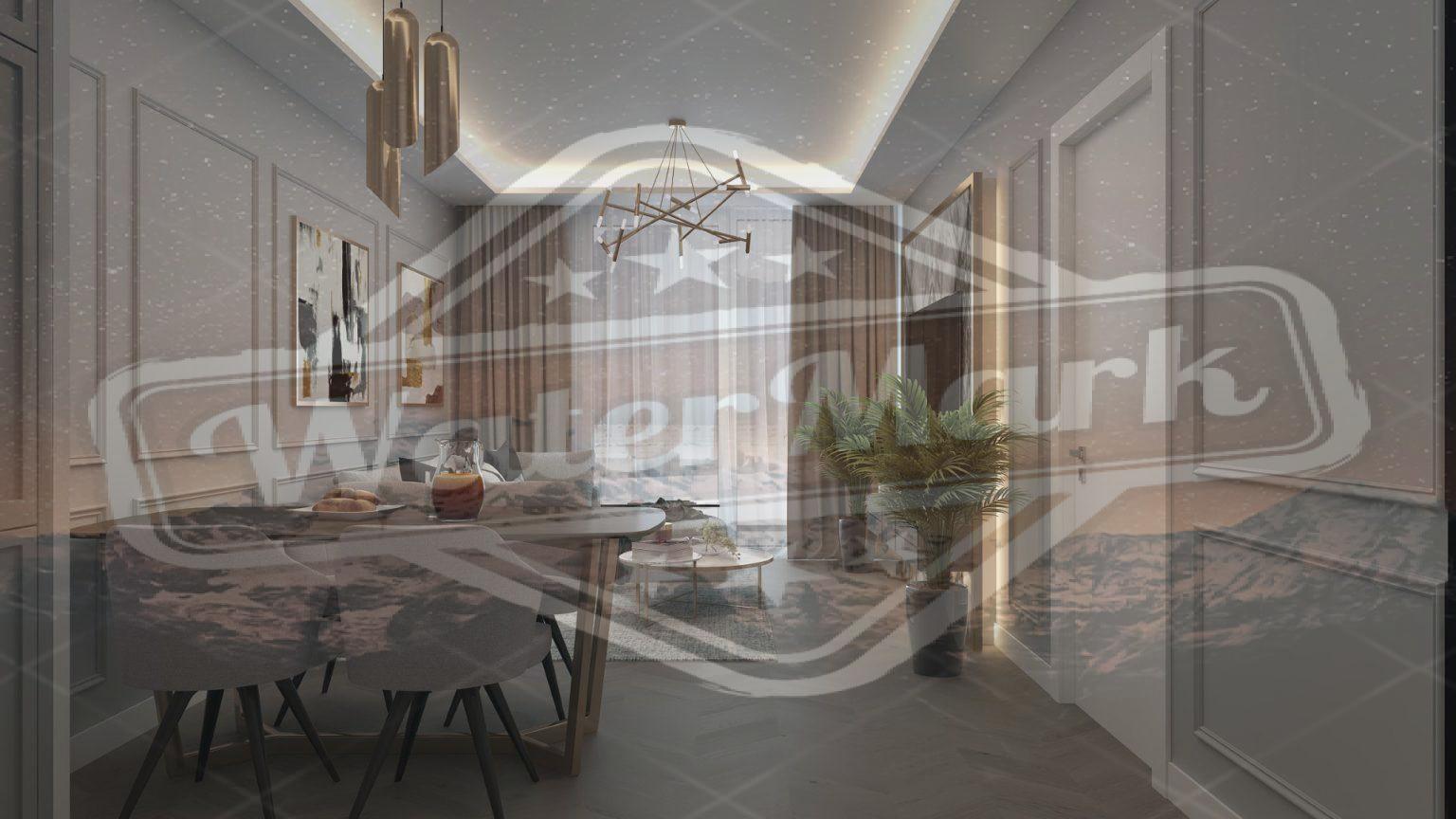 Современный интерьер включает полностью оборудованную кухню и удобную трапезарию, идеальное место для приема гостей или ужина вдвоем.