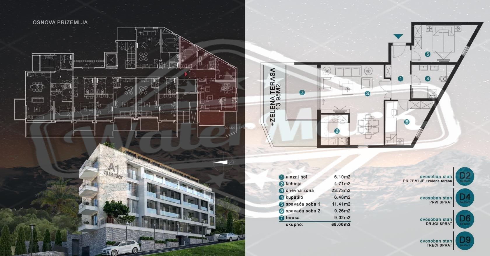 Предлагаем квартиры с удобной планировкой в здании точечной застройки в уютном тихом районе Дубовица, курортного города Будва. Небольшой подъем обеспечивает прекрасные виды на море и горы. До моря около 1,5 километра.