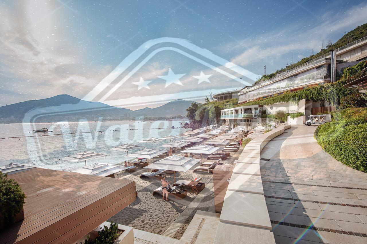 Формат: три спаваће собе, два купатила, гардероба, кухиња-дневни боравак са излазом на пространу терасу са погледом на морску обалу