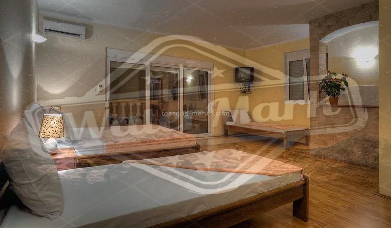 Хотел има 4 спрата. Хотел има 13 соба, од којих су 2 за запослене. Опремљена комфорна рецепција 30м2. Прекрасан панорамски поглед на море и планине са тераса и прозора хотела.