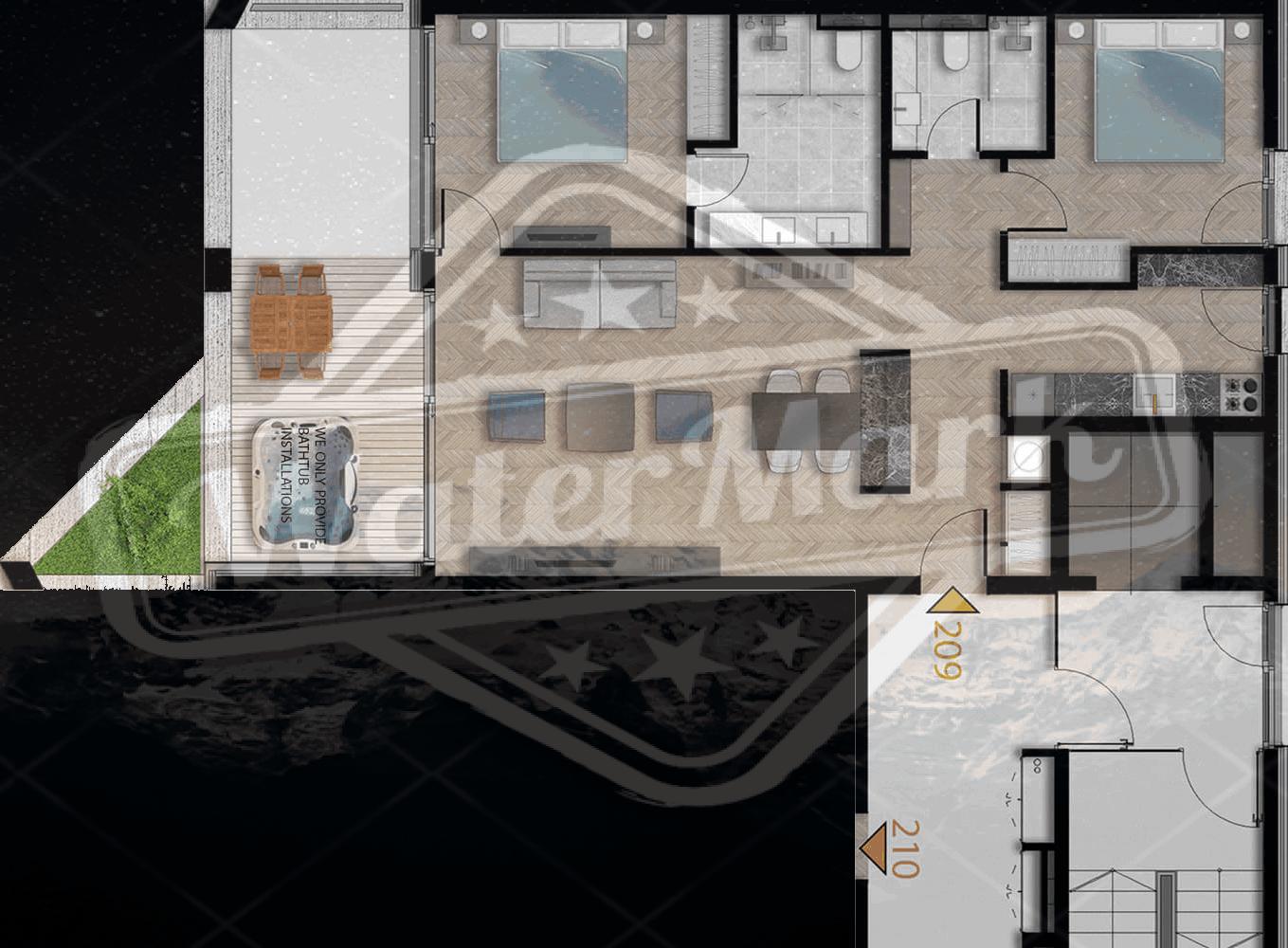 Стан има две удобне спаваће собе и два модерна тоалета, што га чини идеалним избором за породично становање или коришћење за изнајмљивање.