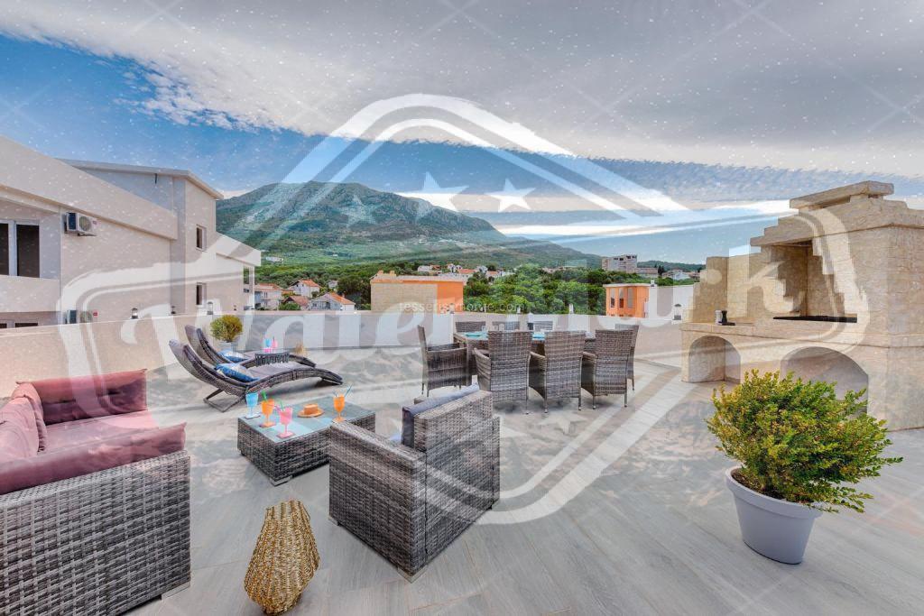 Двоспратна вила се састоји од дневног боравка, 3 купатила, 4 спаваће собе (главна спаваћа соба има своје купатило), трпезарије, потпуно опремљене кухиње и терасе са погледом на море.
