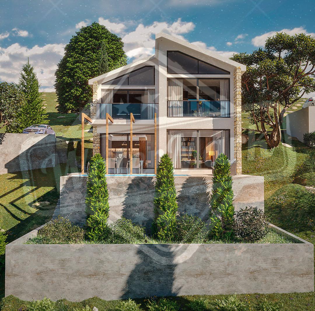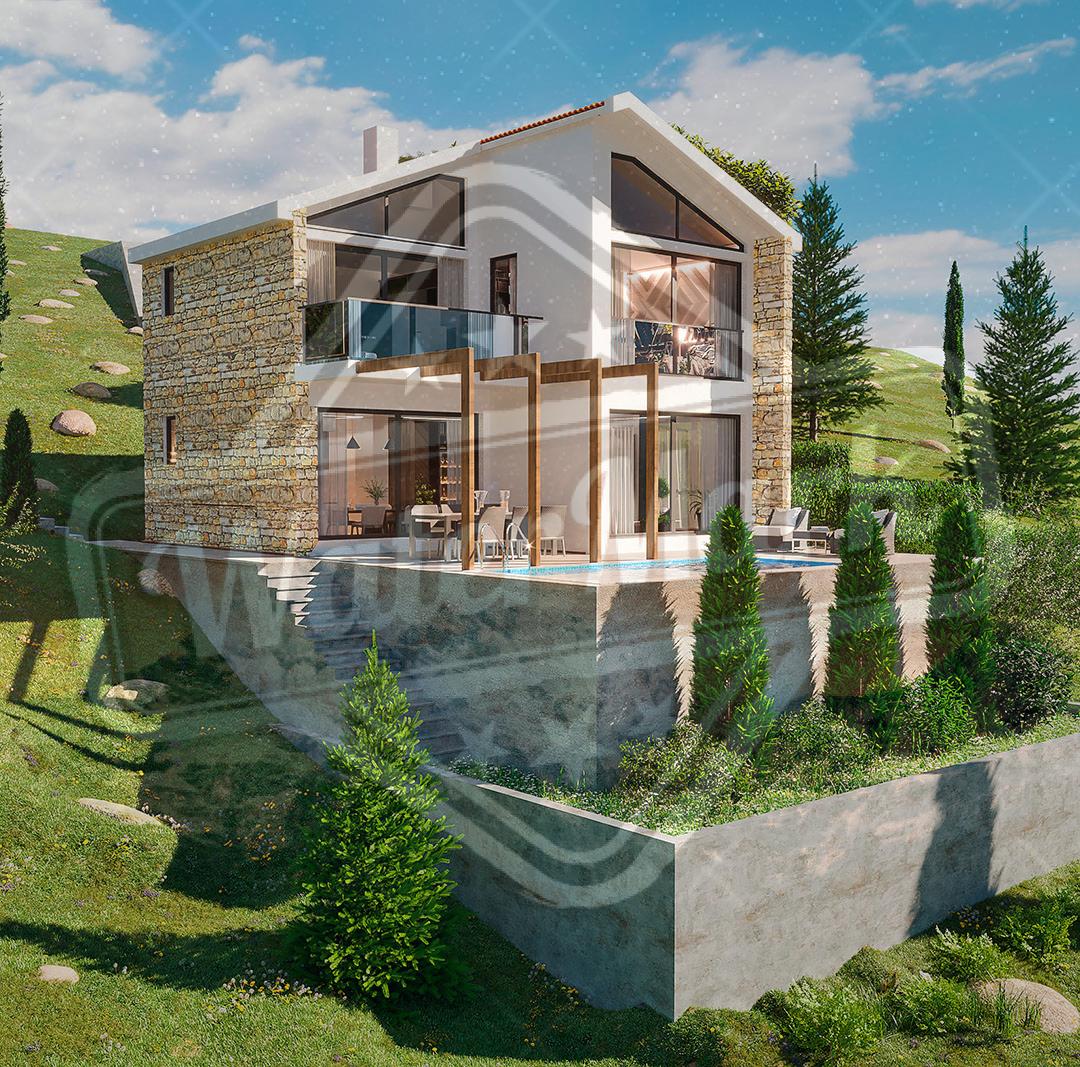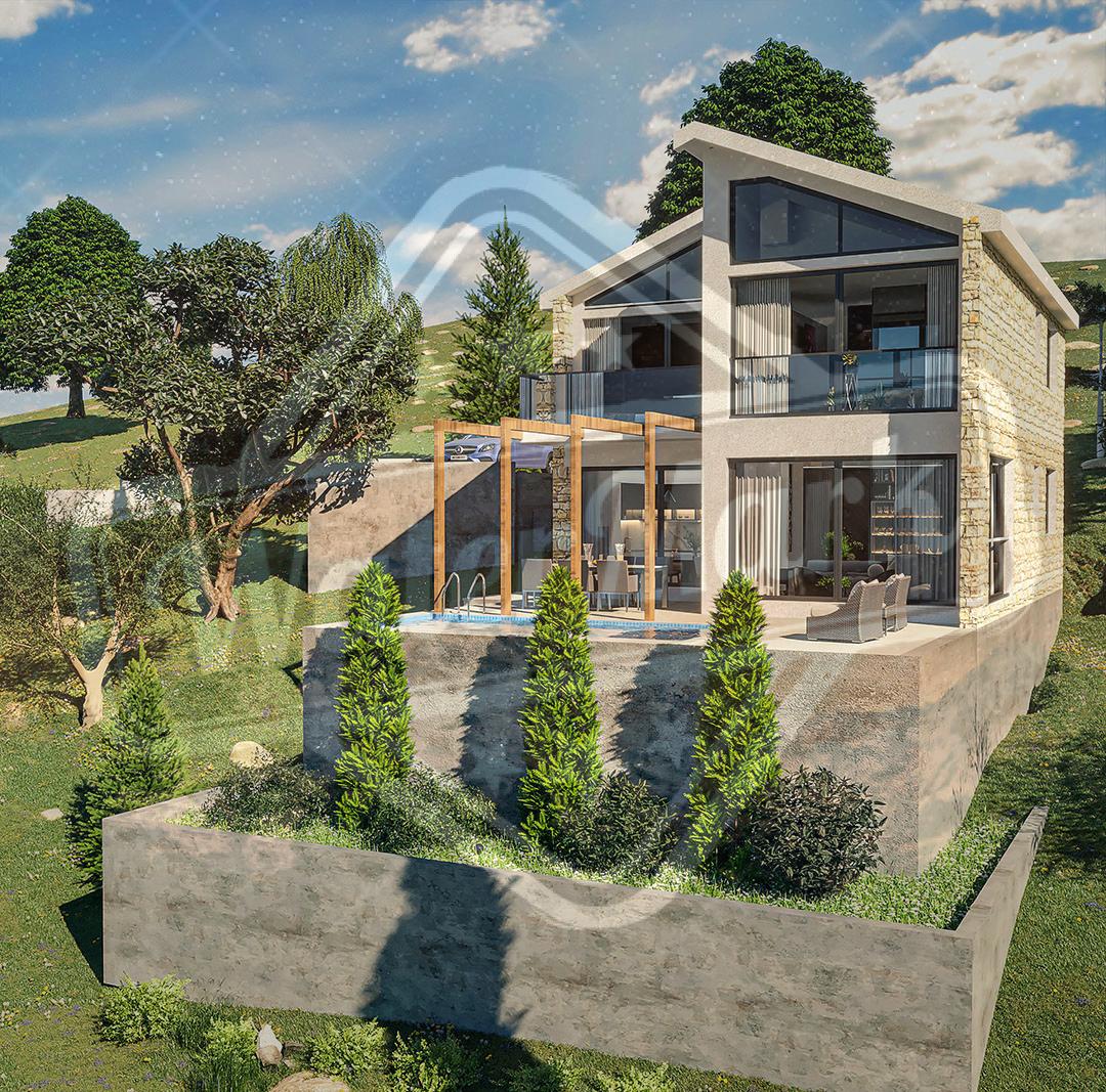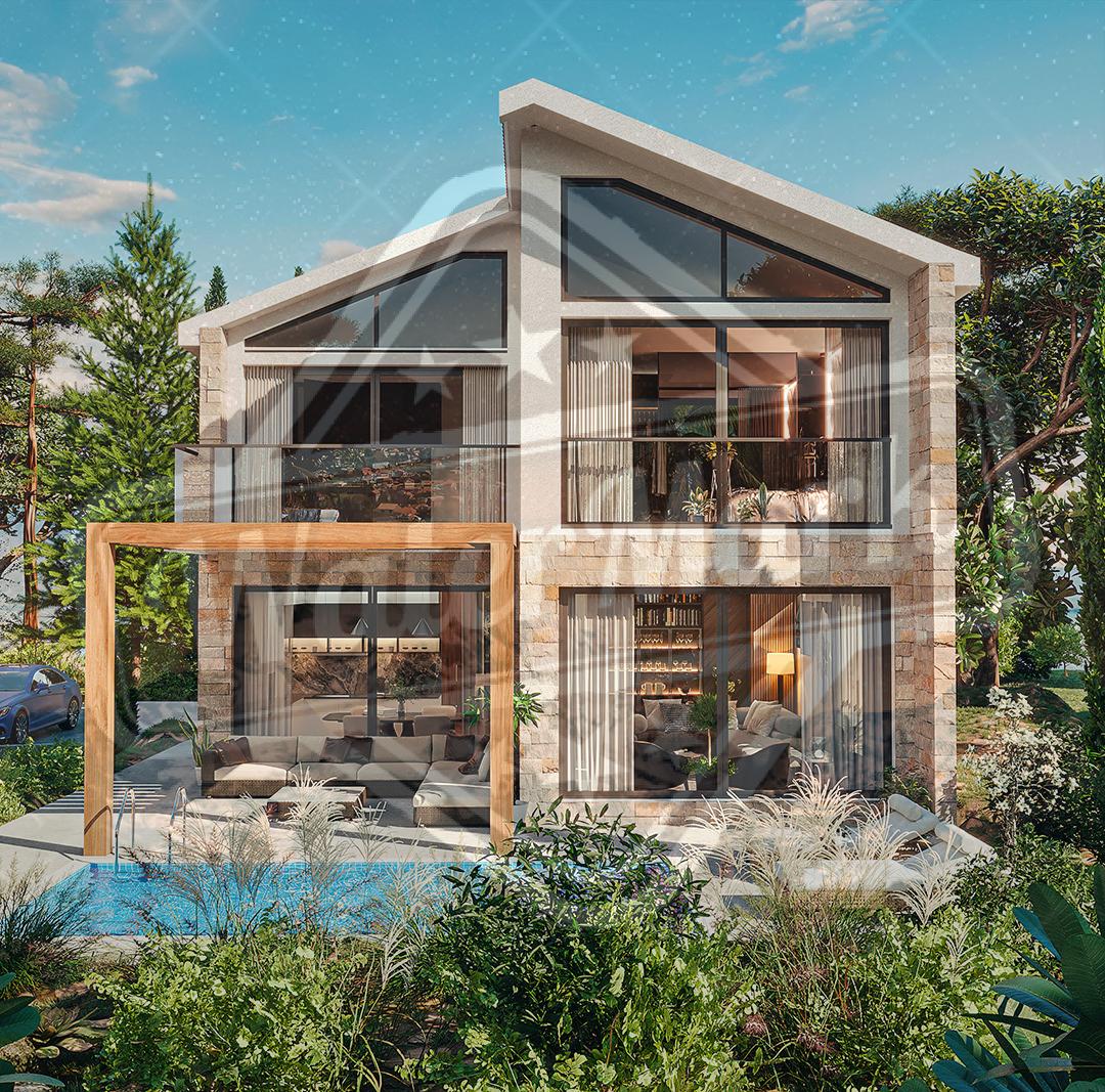 Троспратна једнопородична вила површине 220 м2. Површина плаца је од 1000 до 1200 м2. Индивидуални распоред спрата, дневни боравак-кухиња, 3 или 4 спаваће собе, 3 купатила (једно са кадом), 2 терасе, паркинг место.