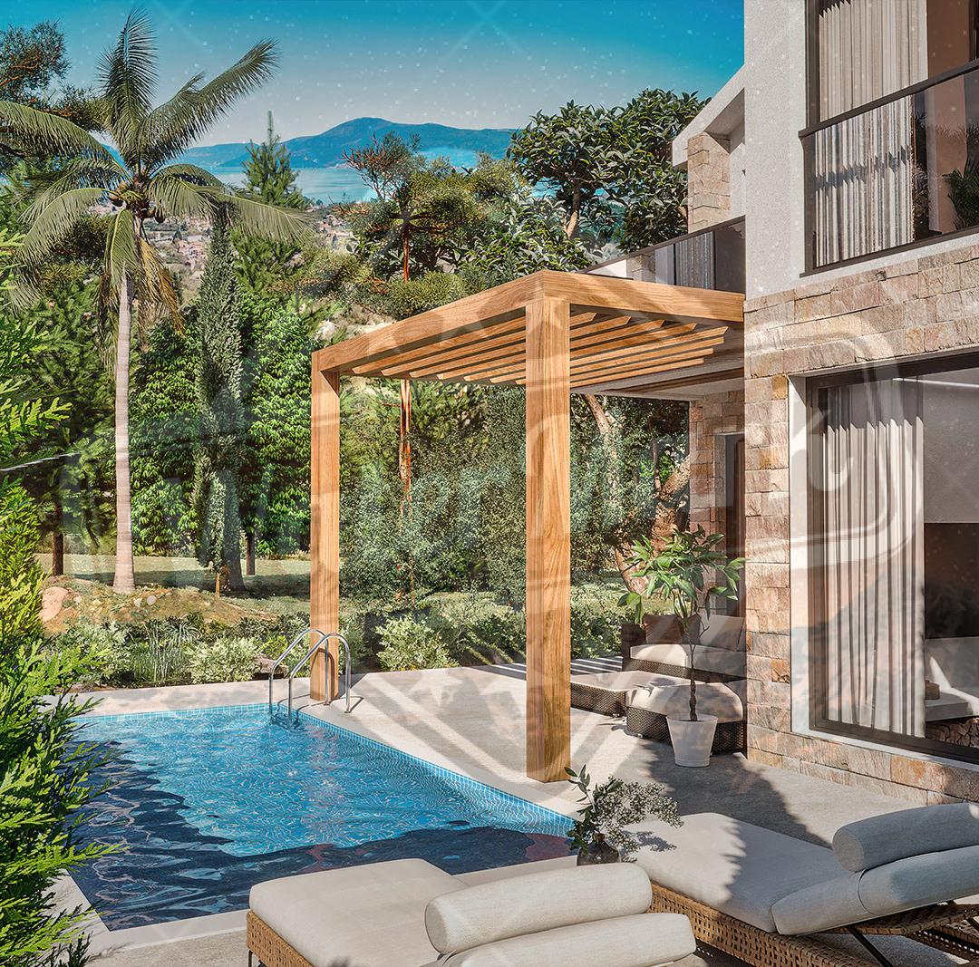 На приватној површини од 23.000 м2. Биће 30 кућа: градске куће за 2 или 4 породице и самостојеће виле за једну породицу. Свака кућа има своју парцелу од 200 до 1200 м2.
