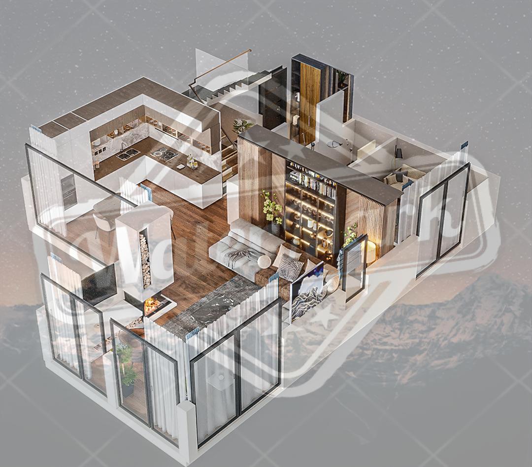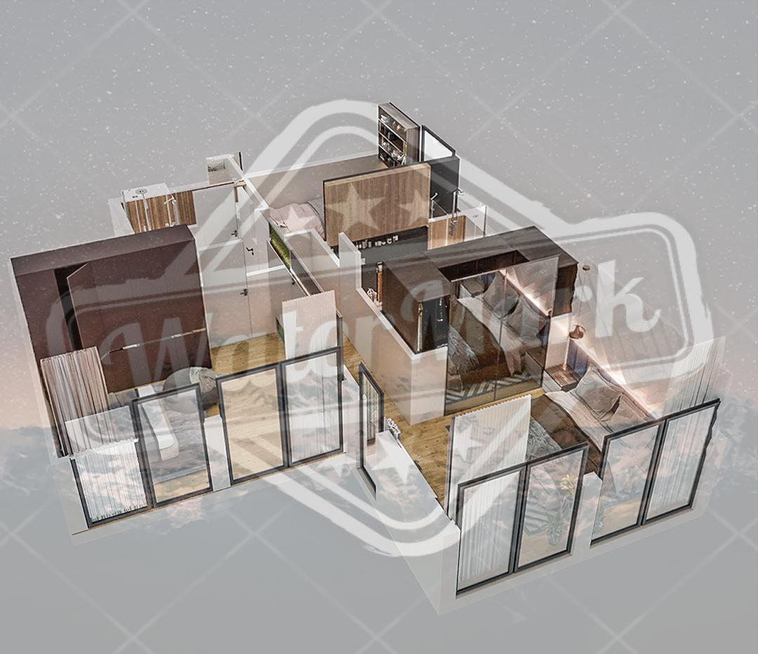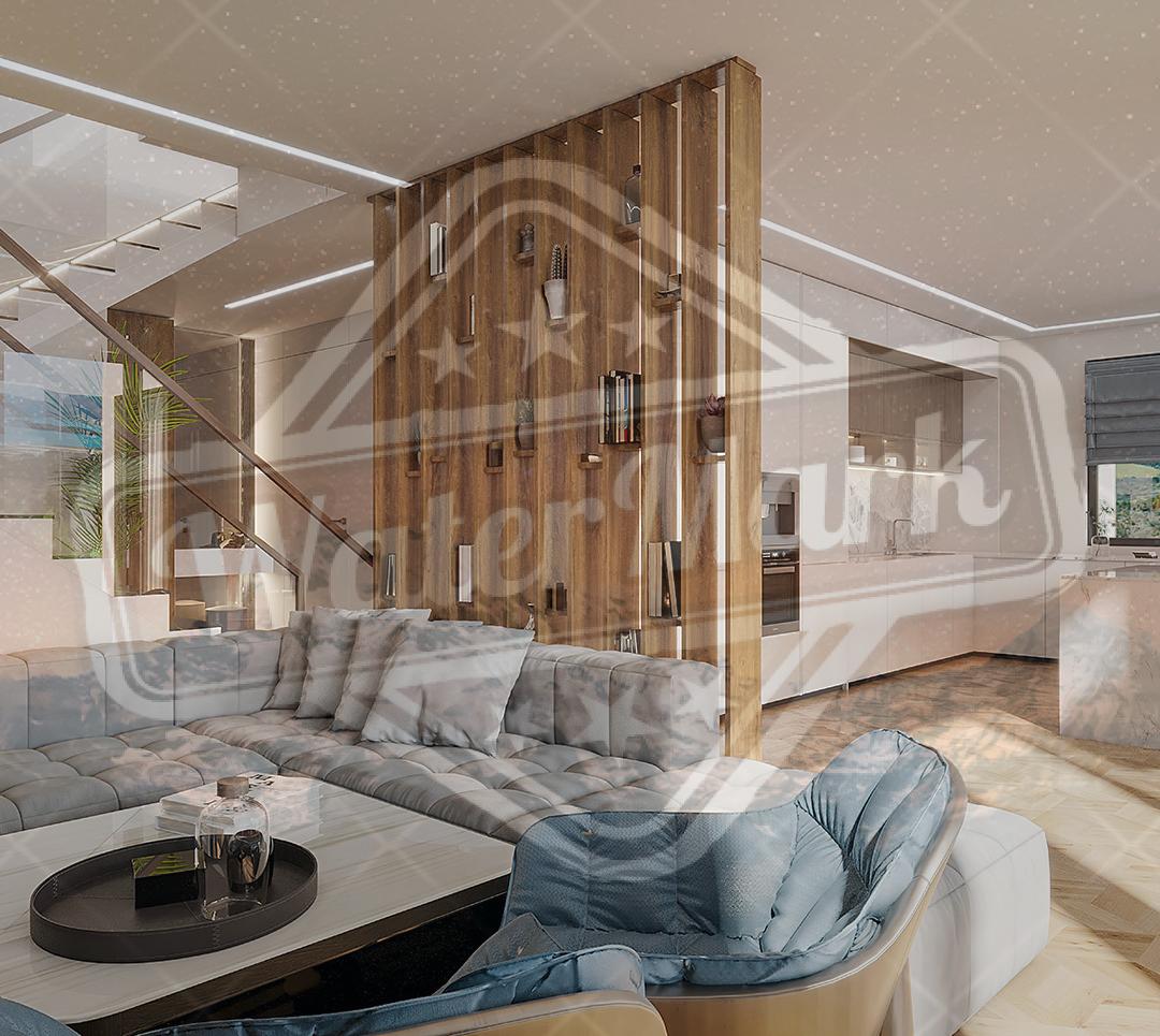 Састоји се од 4 двоетажна стана. Површина сваког стана је 110 м2. Површина плаца 200 м2. Сваки стан има: дневни боравак-кухињу, 2 спаваће собе, 2 купатила (једно са кадом), 2 терасе, паркинг место.