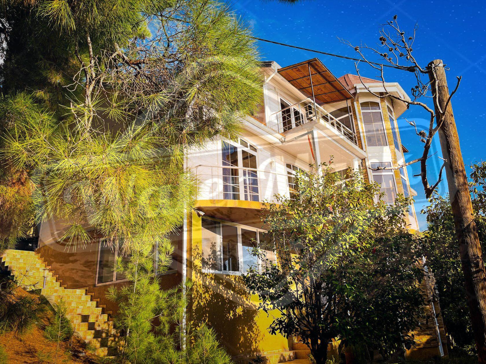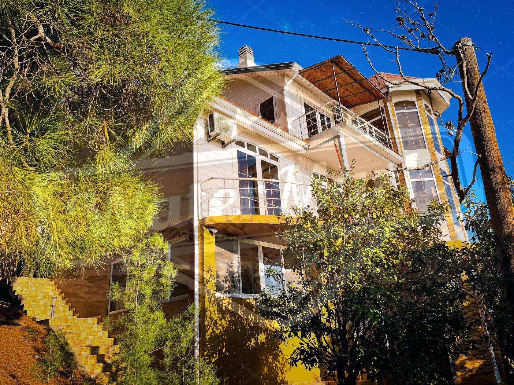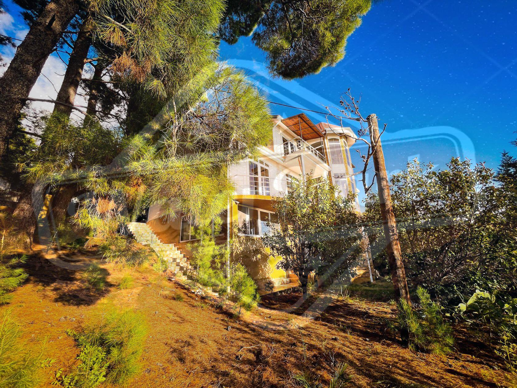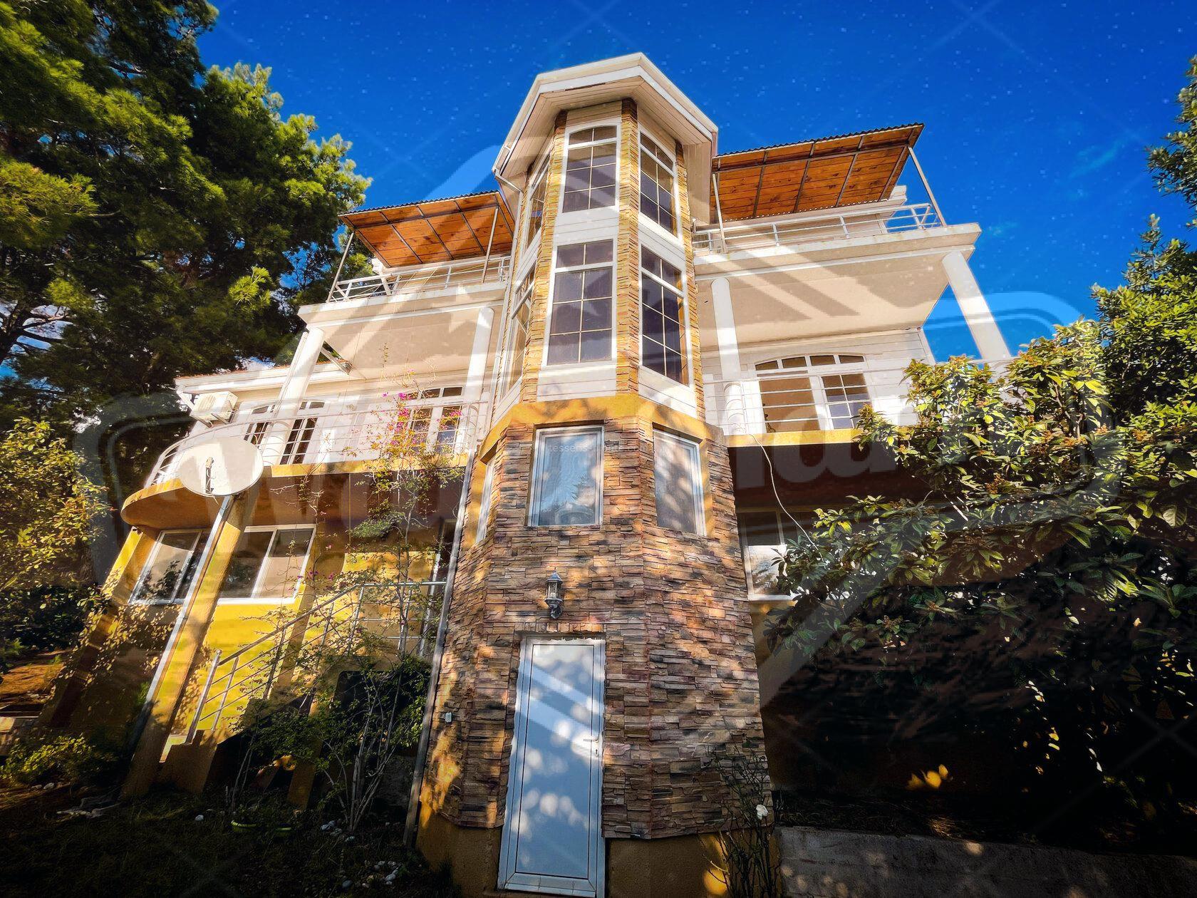 Кућа је окружена четинарским дрвећем са погледом на море.
