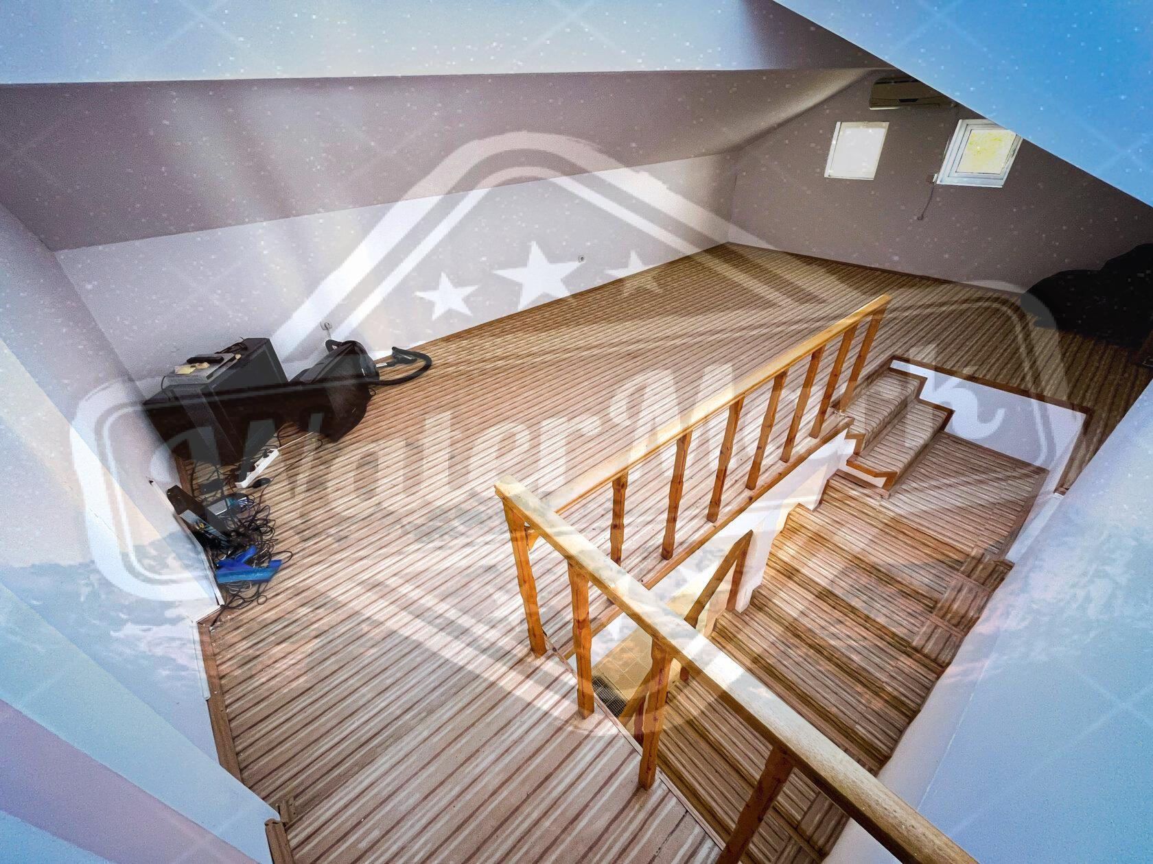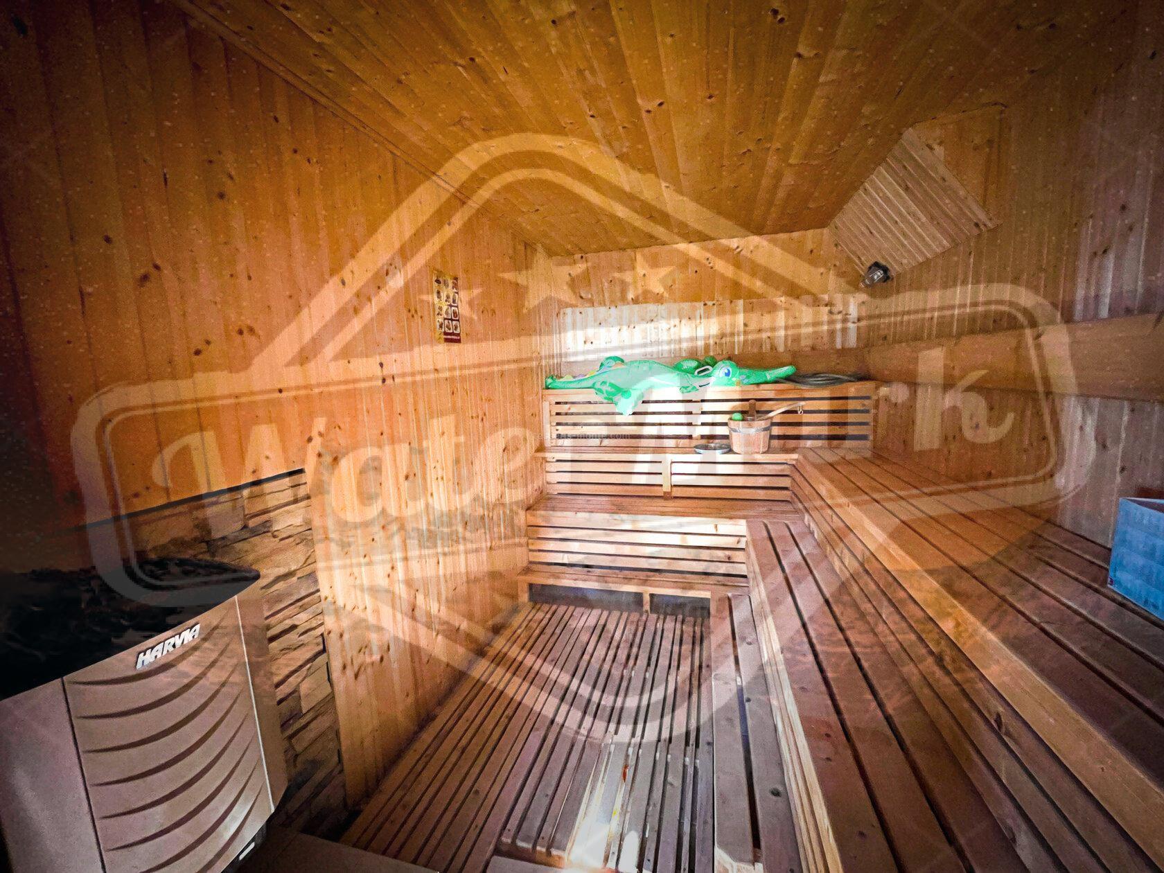 Посебност ове куће је приземље, где се налази пространа просторија од око 100 квадратних метара са сауном. Ово је идеално место за опуштање и бригу о свом здрављу.