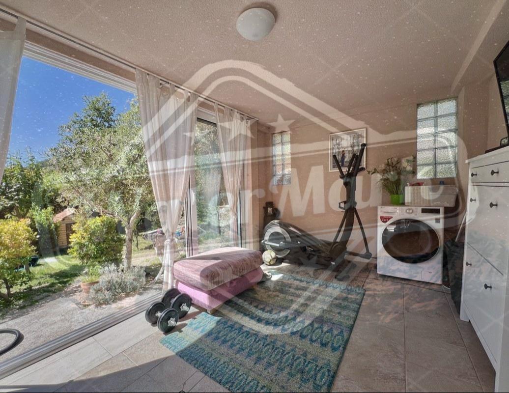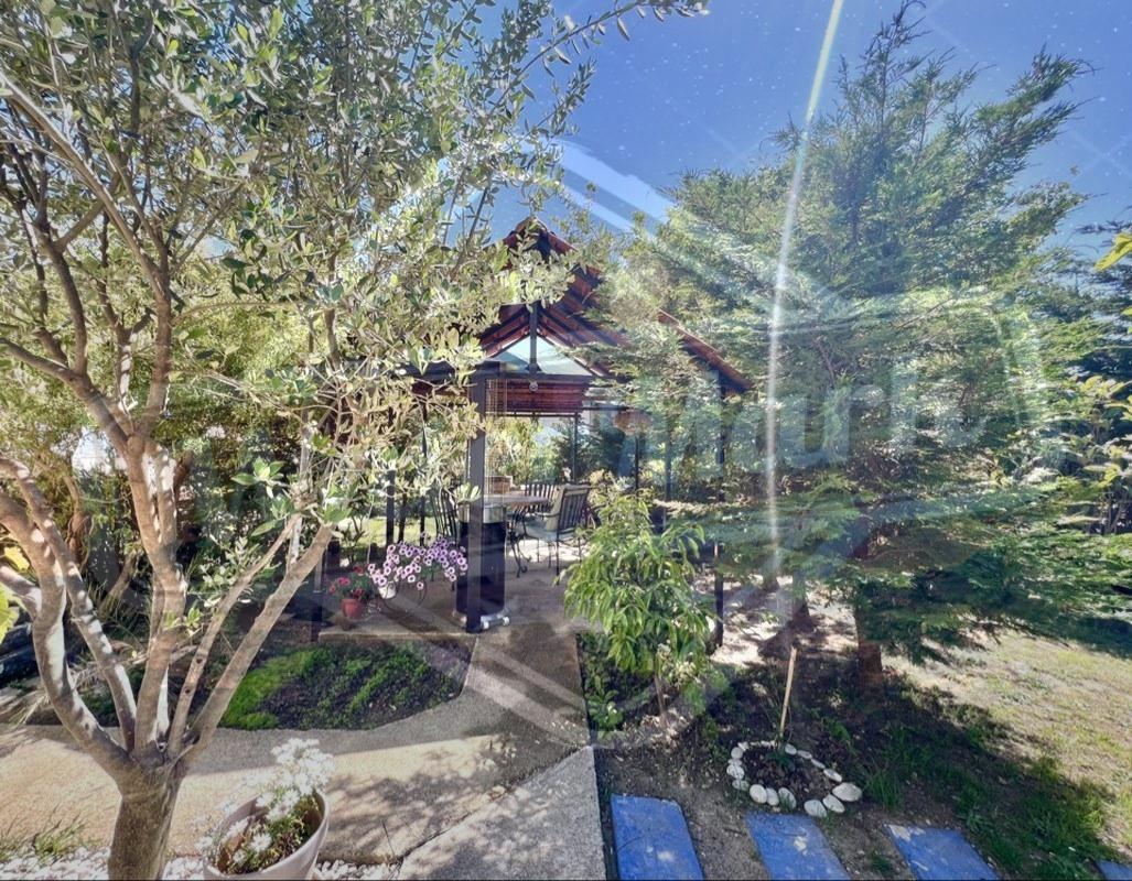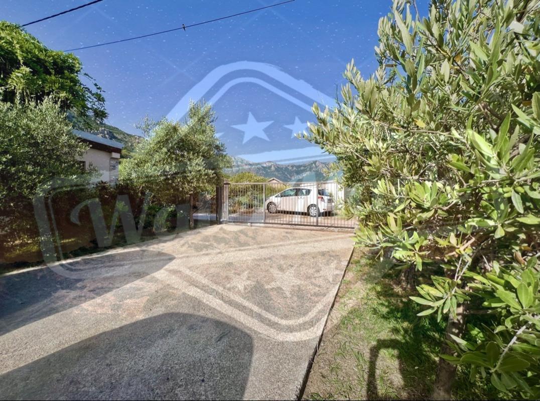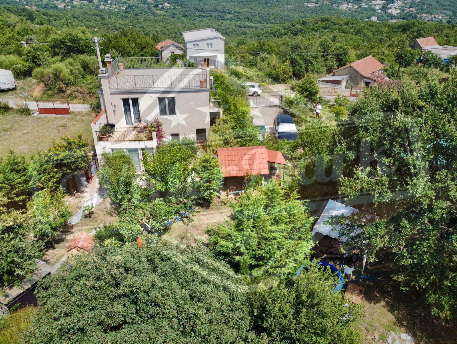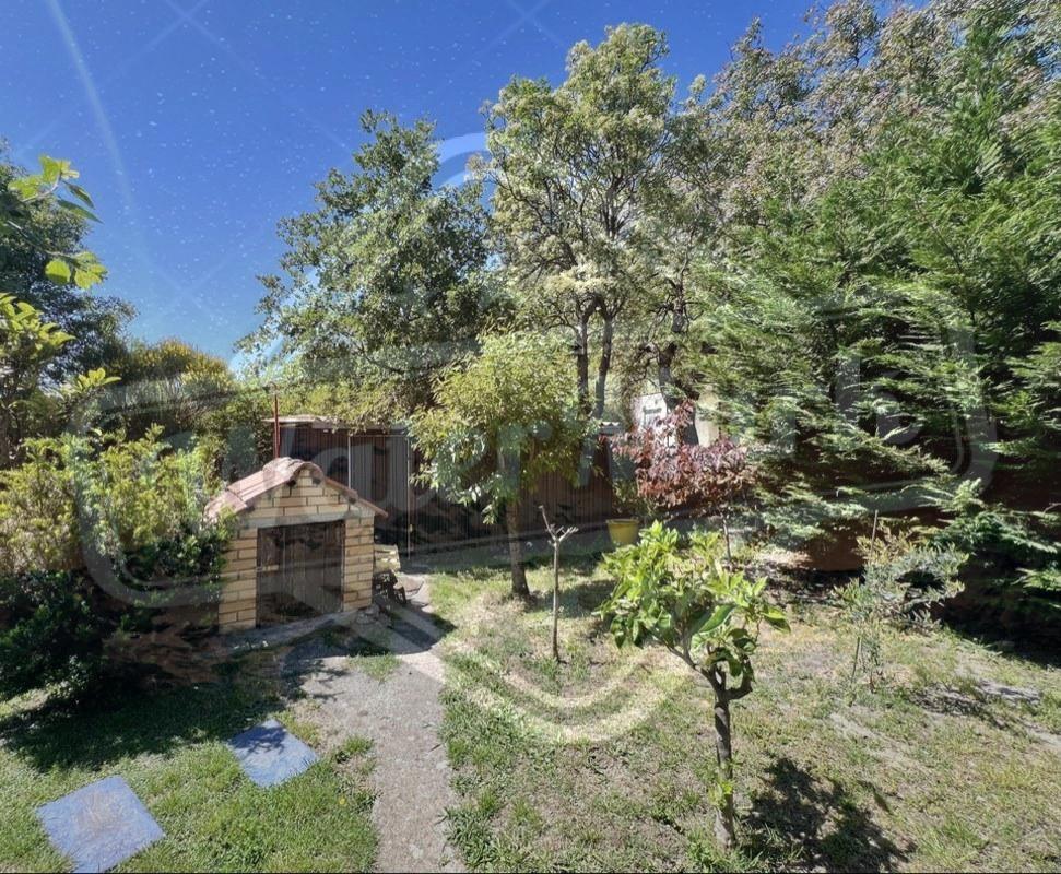 На ділянці ростуть різноманітні фруктові дерева, оливи, декоративні дерева та кущі, створюючи атмосферу саду та затишку. Великий паркінг на чотири автомобілі обладнаний воротами на дистанційному управлінні, що забезпечує безпеку та зручність. Для любителів барбекю передбачено крите місце для приготування їжі на свіжому повітрі, а також господарська споруда, що окремо стоїть.