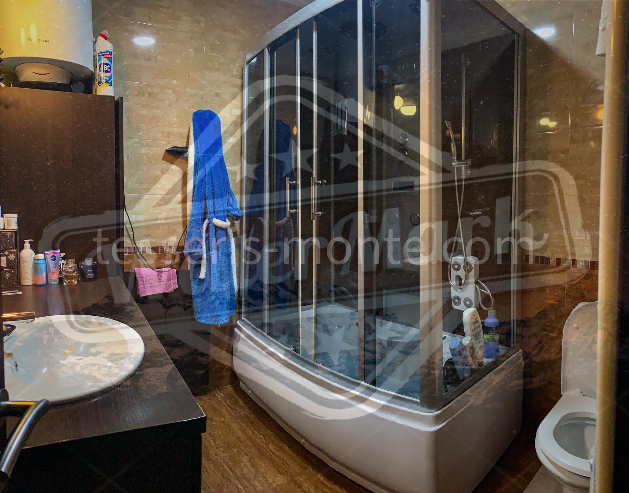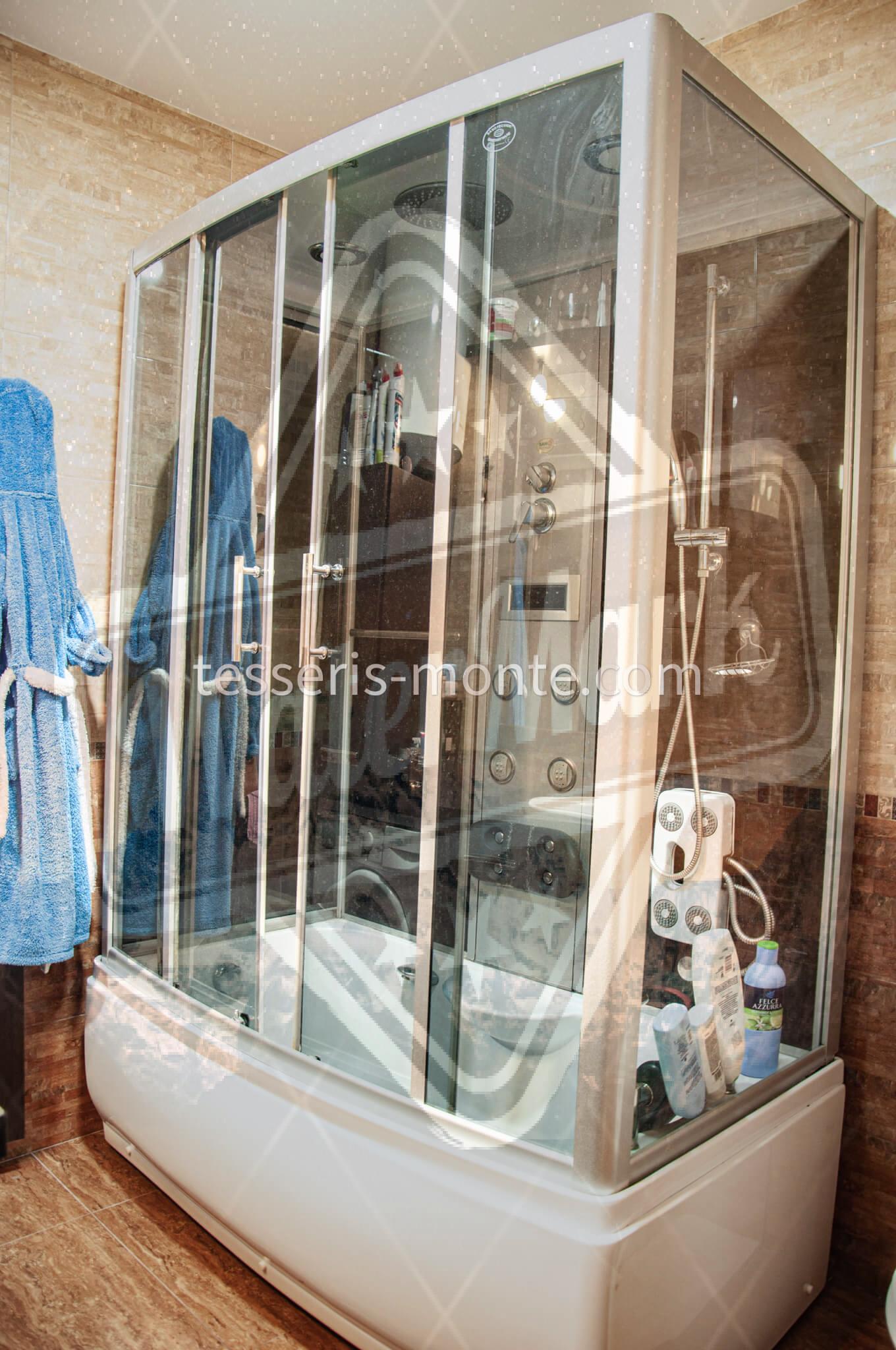У санвузлі встановлена велика душова кабіна.